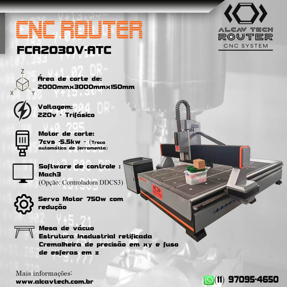 🔧 CNC ROUTER ALCAV TECH 2000mmx3000mmx200mm ( Padrão Industrial)